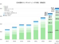 日本国内のコンサルティング市場規模は2兆3,422億円|コンサル市場規模2025年版~前半~2026.01.29毎年好評を得ている「日本国内におけるコンサルティング市場規模推定・予測」の情報を前半・後半の2本立てでお届けし...コンサル業界, 業界動向, Big4, コンサルティングファーム